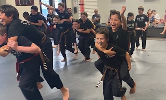 Our martial arts classes for kids are full exercise routines disguised as a boatload of fun! That’s because they are jam packed with activities, games and drills that are all designed to disguise the repetition of training.